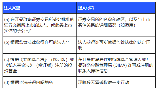 若您位于開曼群島的實體,按照此次修改前的法規被視為不在約束范圍內或享受豁免權益,則須盡快對其進行評估,確定該實體是否符合以下標準之一: