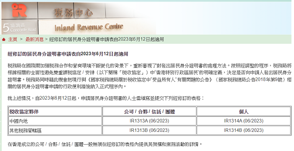 在國際間加強稅務合作和不斷變化的營商環境的背景下,香港特別行政區稅務局(以下簡稱“稅務局”)重新審視了發放居民身分證明書的處理方法,并宣布自2023年6月12日起,稅務局將根據相關的全面性避免雙重課稅協定/安排(以下簡稱“稅收協定”)中“香港特別行政區居民”(以下簡稱“香港居民”)的明確定義,決定是否可以向申請人出具香港居民身分證明書。