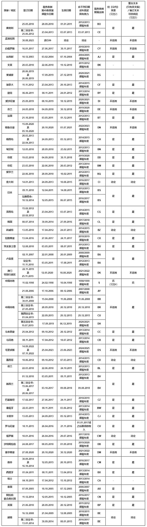 稅收協定簽訂國家/地區
