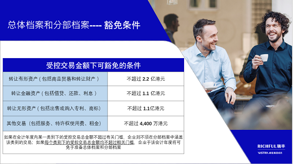 2)交易金額豁免當某類受控交易總額未超過規定門檻時,可豁免本地文檔準備:
